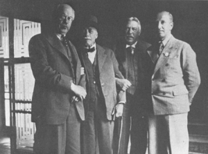 Møde i Helsingfors 1928. I første række fra venstre Carl Holmdahl, Gösta Häiggquist, Fabian Langenskiöld og Patrik Haglund. I næste række P. G. Bentzon, P. Guildahl, R. Faltin, A. R. Klossner, H. Camitz og Kern. Næste række: Harald Nilsonne, P. Giertsen, G. Asplund og T. Kalima. Næste række: Simo Brofelt, Kjell Bergman og Sven Johansson.